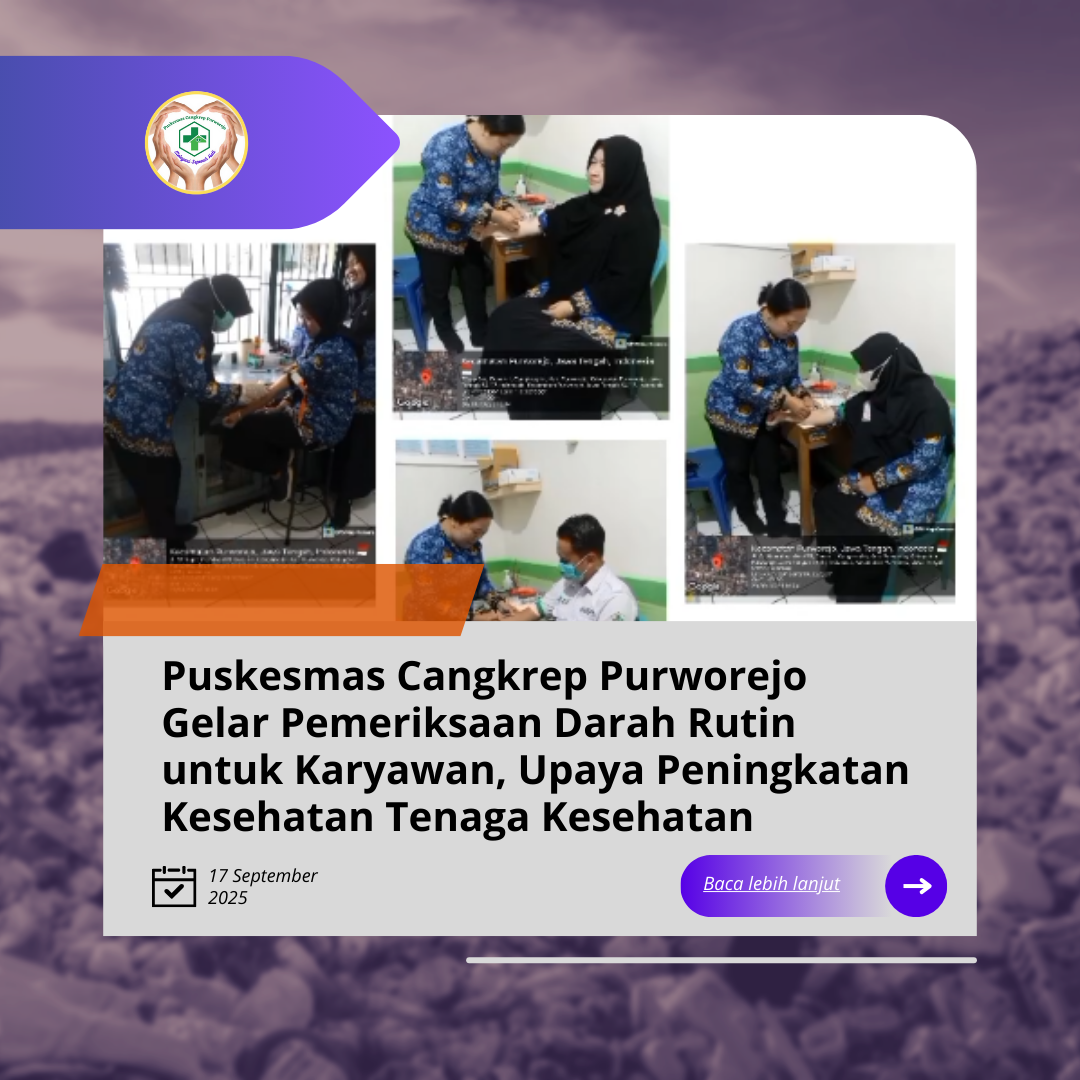 - Puskesmas Cangkrep Purworejo Gelar Pemeriksaan Darah Rutin untuk Karyawan, Upaya Peningkatan Kesehatan Tenaga Kesehatan